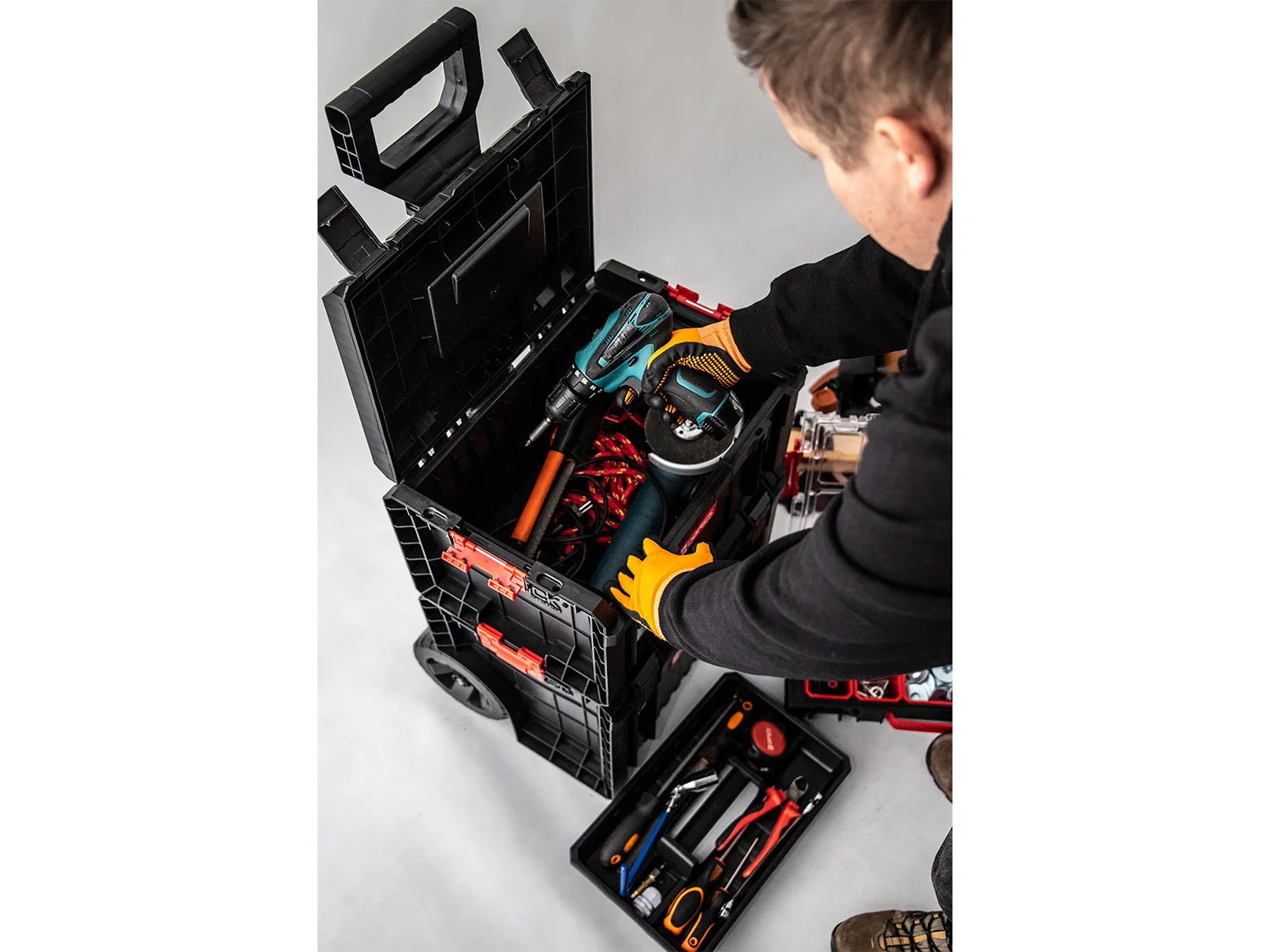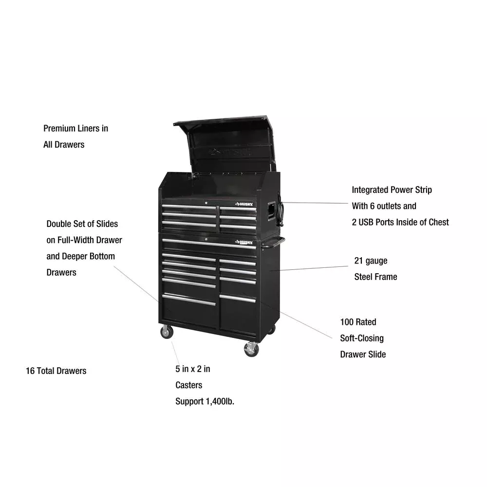 41 IN. X 24.5 IN D 16-DRAWER GLOSS BLACK TOOL CHEST UND CABINET COMBO